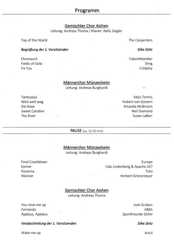 Gemischter Chor Aichen e.V. 1. Vorsitzende Silke Zeitz |